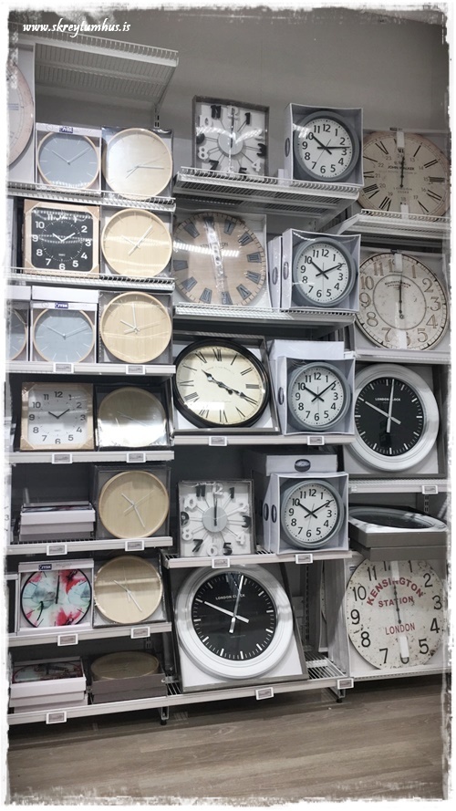 …nóg af alls konar klukkum, og flott að setja margar saman á vegg – klukkur…
