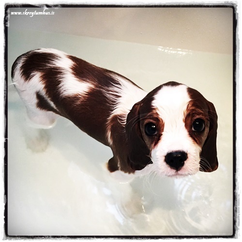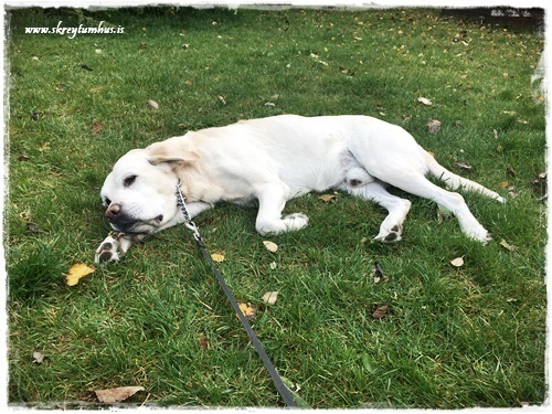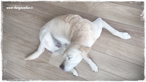 …en skjótt skipast veður í lofti. Við komum heim seint á laugardagskveldi.  Á sunnudagskvöldi varð Stormurinn okkar orðinn lasinn…