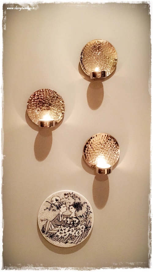 …síðan prufaði ég líka veggstjakana á veggnum inni í eldhúsi…