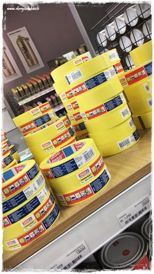 …næsta skref fól í sér límband, og við fengum svona sérstakt nákvæmnis límband í Slippfélaginu sem mælt var með…
