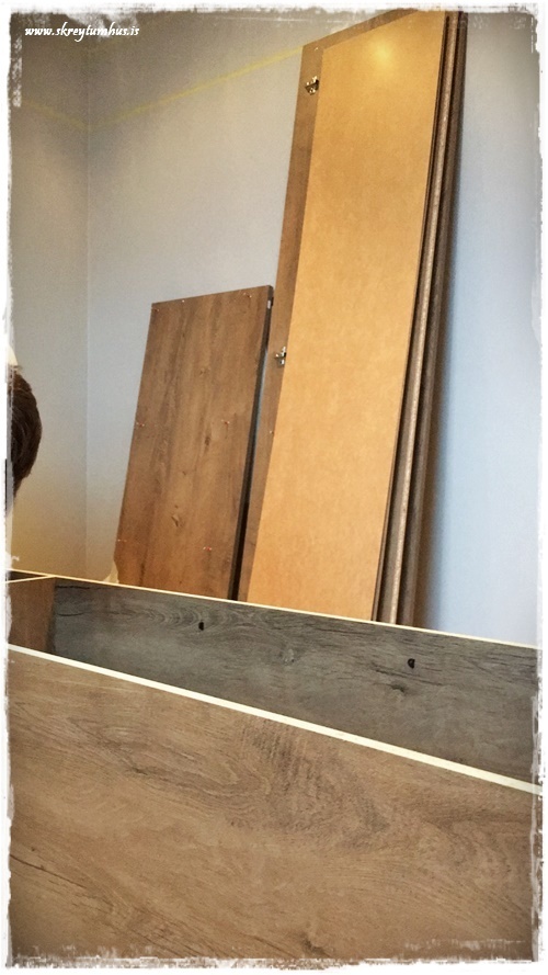 …ég valdi síðan inn skáp frá Rúmfó sem heitir Manderup – sjá hér…