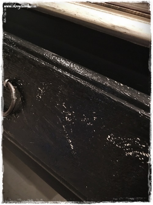 …en fyrst að spegillinn var kominn, þá varð ég bara að gera það sem mig hefur langað til þess að gera svo mánuðum skiptir – mála hliðarborðið…