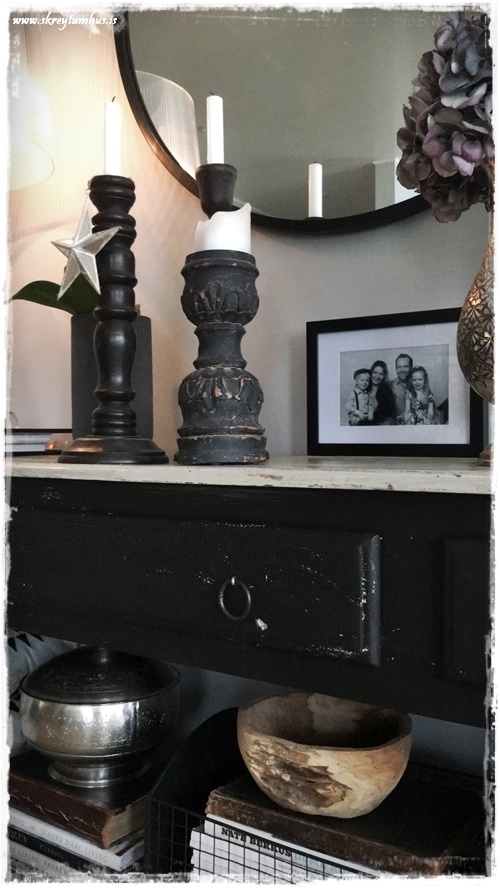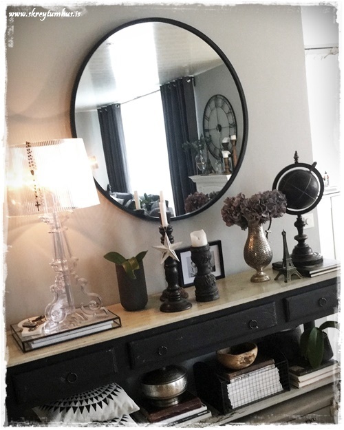 Þessi spegill kemur ótrúlega vel út og að mála borðið svona svart lætur það vera meira áberandi, bara snilld.