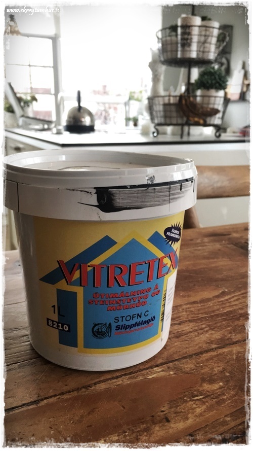 …og að vanda þá notaði ég þessi hérna málningu frá Slippfélaginu, en ég er búin að nota hana mjög mikið hér innanhús. Ég hef ekkert verið að pússa niður áður, eða lakka yfir á eftir, en hef líka verið að nota hana á svona gróf húsgögn, og ef mér finnst þurfa – þá bæti ég bara á þegar að tíminn líður. Það sem ég hef nú þegar málað með henni hér inni er: