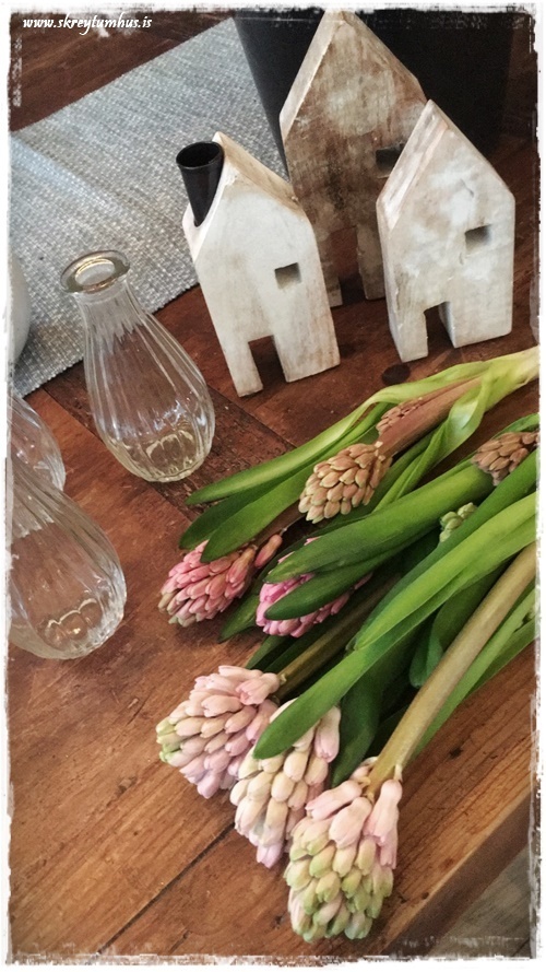 …svo hreint geggjaðar afskornar hyasintur, vá hvað mér finnst þær passa betur sem vorblóm frekar en um jólin. Tréhúsin fannst mér líka æðisleg, og litlir vasar sem kostuðu bara 199kr…
