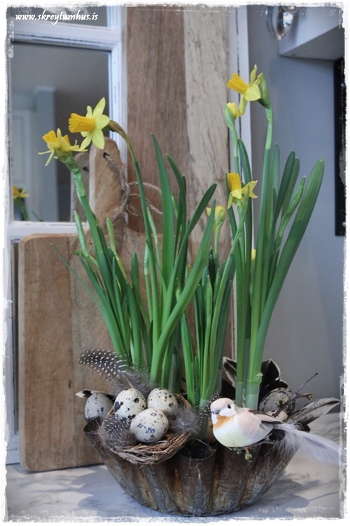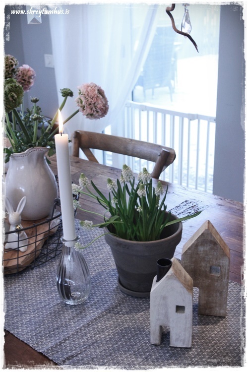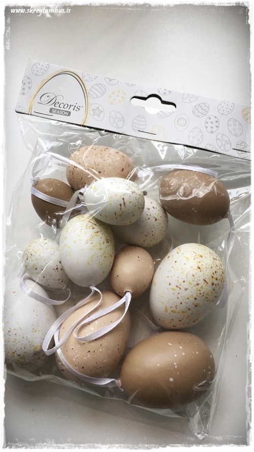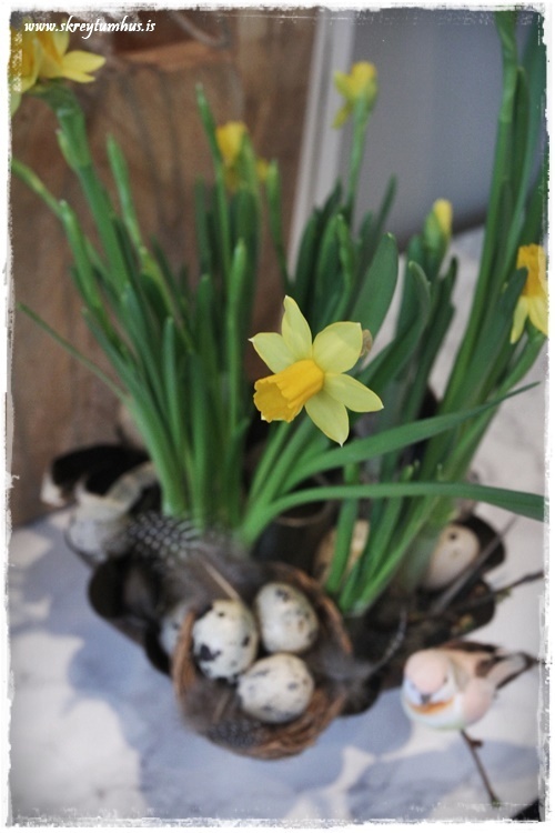 Ég arkaði því af stað í Blómaval (eða sko keyrði, og arkaði frá bílnum og inn í verslunina) og kippti með mér einu og öðru sem minnir á páska, og auðvitað bara á elsku vorið.