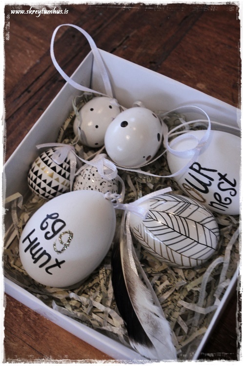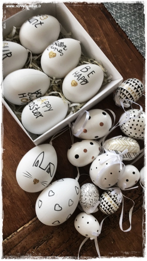 …eggin eru auðvitað ómissandi fyrir páskana, og þessi er hreint æði. Hvít með svörtu og svona smá gylltu…