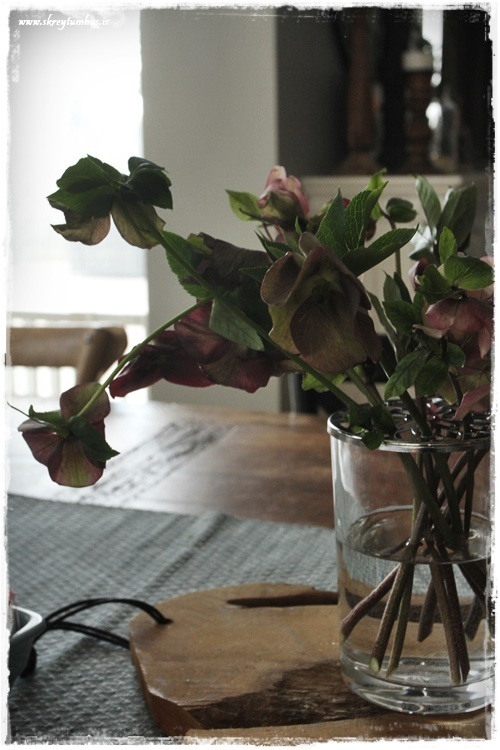 …fersk blóm (ótrúlega falleg úr Blómaval) og smá eggjaskraut í postulínsbakka, þetta getur ekki klikkað…