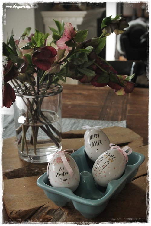 Þetta smá gerist sko, en svo er það líka þannig að ég er ekkert endilega að taka skrautið niður strax eftir páskahátíðina – heldur er þetta meira svona vorskraut…