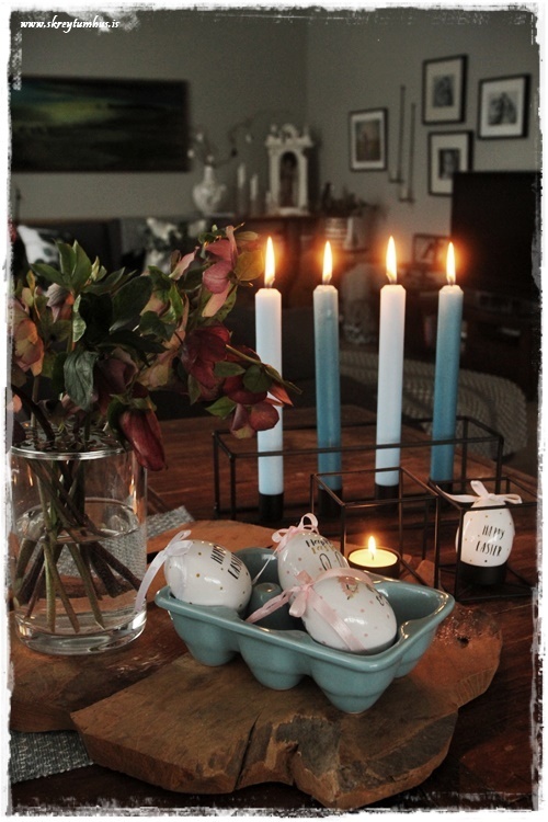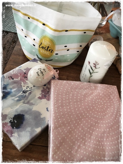 …eða þá, að finna nokkrar fallegar servéttur – kerti og jafnvel egg…