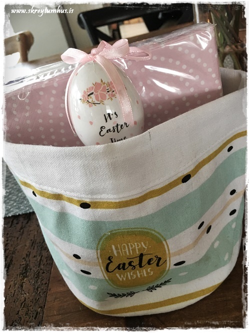 …svo voru það litlu páskapokarnir – skemmtilegir undir brauðbollur og annað slíkt á matarborðið. Eða að setja blómapott ofan í og bara litlar páskaliljur…