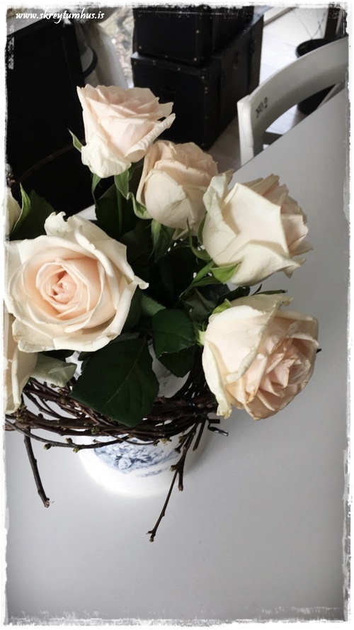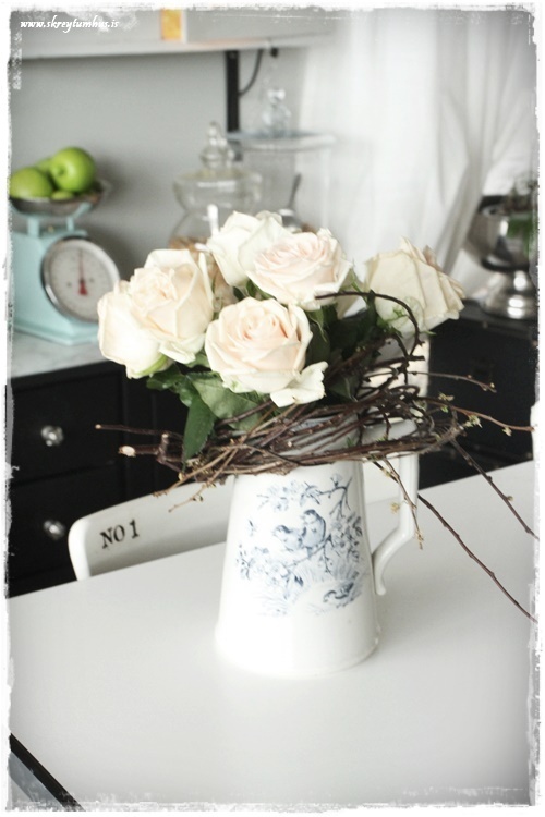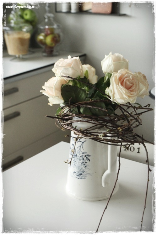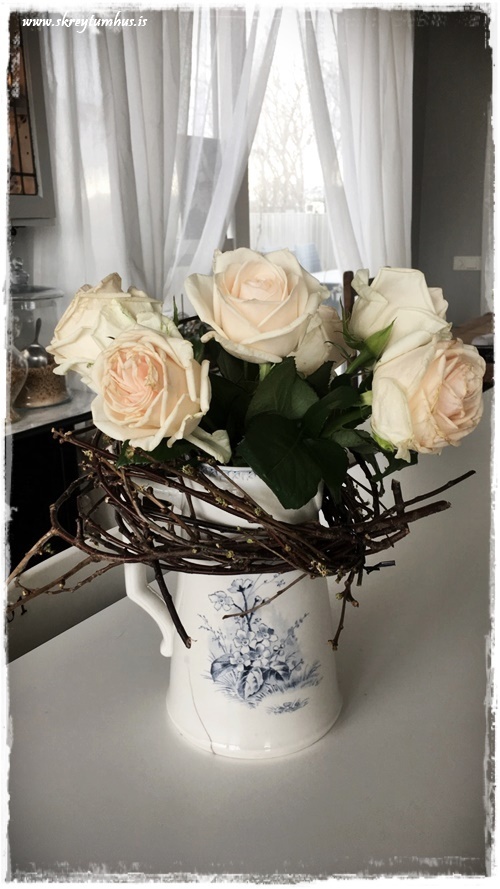 …setti utan um gamla könnu og svo bara rósir ofan í….