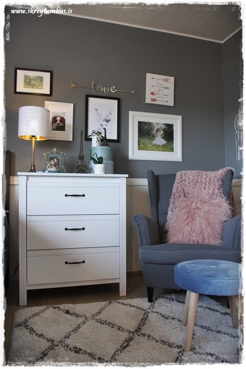 …nú er daman komin með kózý leshornið sitt, og ég ætla bara að leita að litlum smellulampa til þess að hún sé með lesljós þarna í horninu…