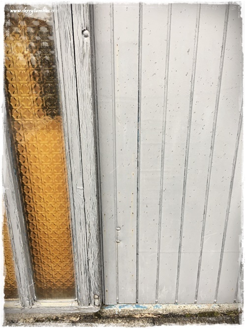 …við ákváðum líka að taka í burtu gluggana, því að timbrið var alveg ónýtt og okkur fannst þeir ekkert sérlegt prýði.  Það er í raun erfitt að sýna myndir af þessu ferli, því að hurðin var sett í innan frá, og svo var sú gamla tekin.  Við vorum með snilldarsmið sem aðstoðaði okkur við verkið, og svo er elskulegur eiginmaðurinn nú ansi hreint handlaginn…