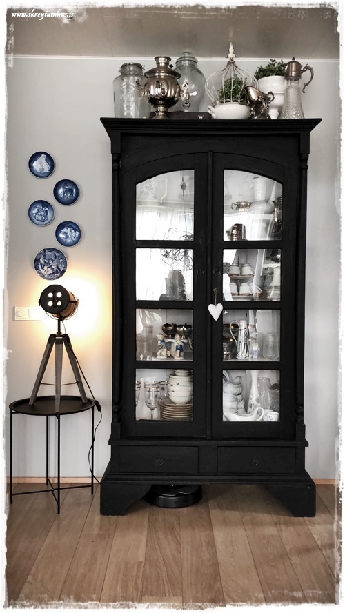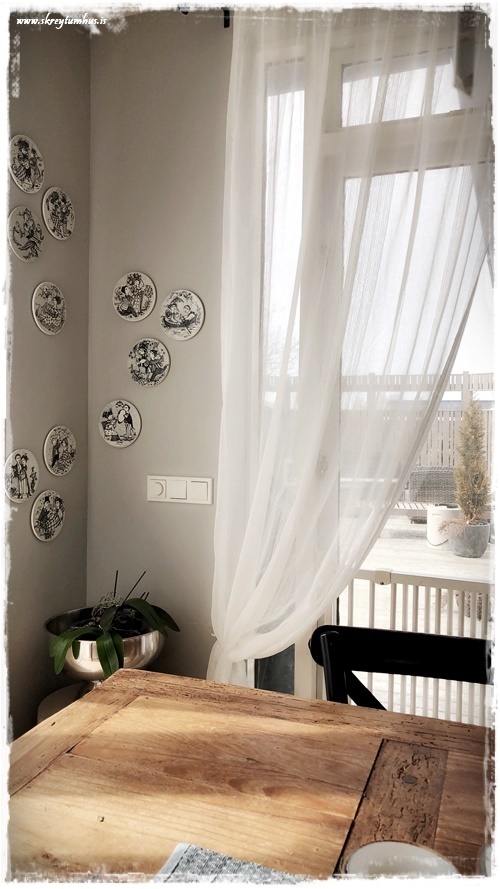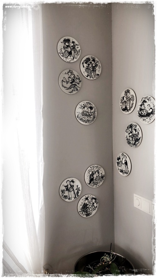 …en núna átti ég 11 stk, og þá þýðir ekkert lengur að hafa þá við hlið skápsins, því skipti ég út og setti bara Mors-dag diskana þarna í staðinn…