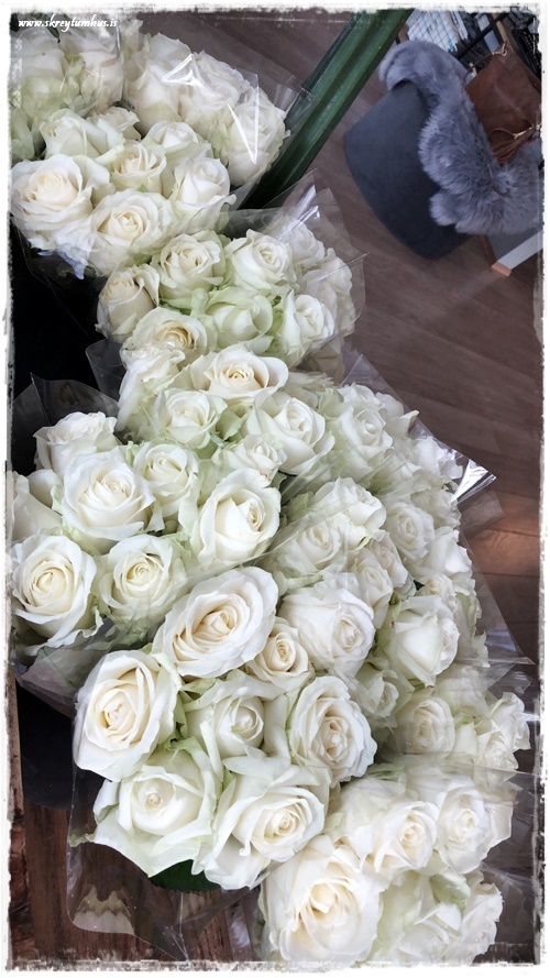 …rósirnar, hybericumber í hvítu og grænu og orienthal-liljur…