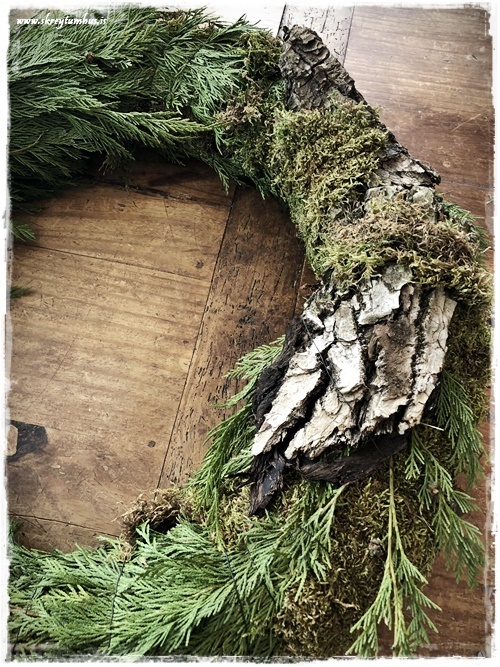 …og hinn kransinn var síðan hefðbundnari, en lögð áhersla á að leyfa berkinum og mosanum að njóta sín…