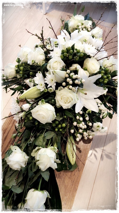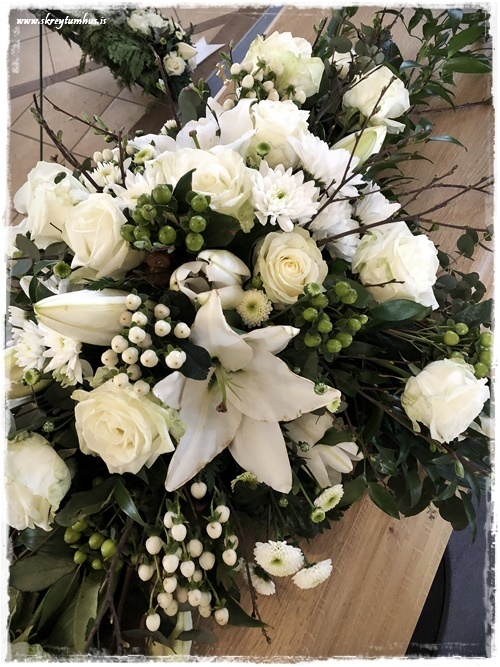 …en ég fékk þann heiður, og verkefni, að gera kransa og kistuskreytingu, og var afar þakklát fyrir að geta gert þetta seinasta fyrir hann…