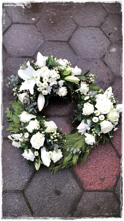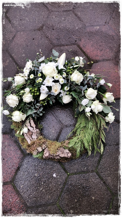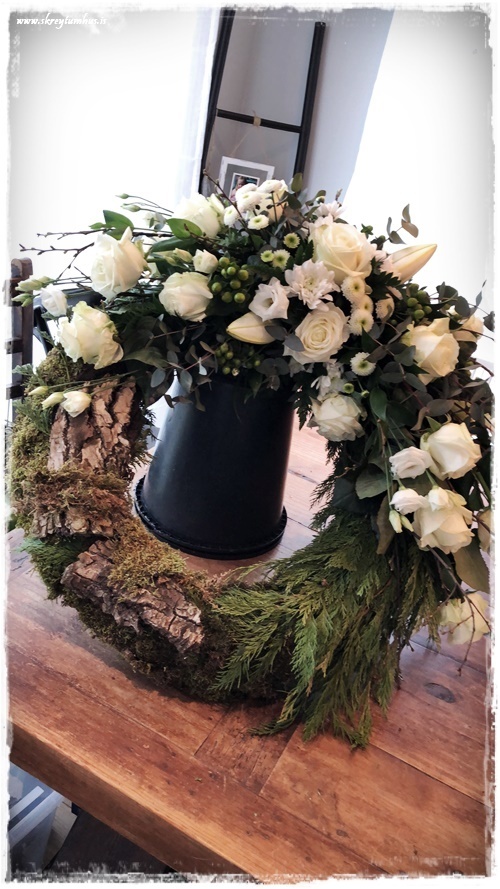 …alltaf þegar ég geri kransa þá legg ég mikla áherslu á að hringformið sjáist mjög vel. Því að það er hringurinn sem er táknið fyrir eilífðina…