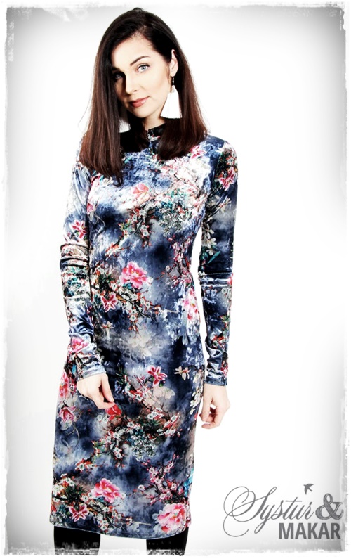 …þetta blómaefni er hrein dásemd, þannig að kjóll í bláu í sama efni er líka dásemd…