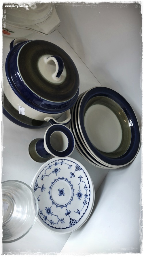 …svo fallegir hvítir og bláir diskar, er mjög spennt fyrir þessum í miðjunni…