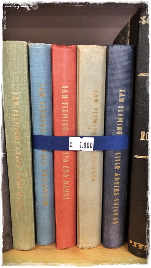 …þetta gæti verið skemmtileg gjöf fyrir t.d. herrann sem allt á – James Bond bækur, gamlar og þreyttar og fullar af karakter. Líka fallegar í hillu…