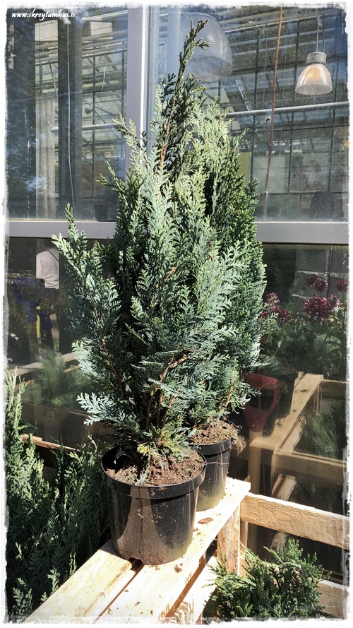 …svo er alltaf fallegt að taka eitthvað svona sígrænt, sem að getur lifað áfram eftir sumarið – eins og t.d. Himalagaeinirinn…