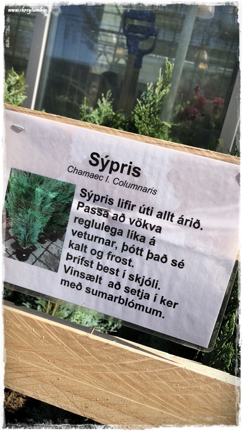 …eitt af því sem ég, og næstum allir hinir, kaupum alltaf út á pall er Sýprisinn, enda er alveg möst að taka einhverjar plöntur sem gefa smá hæð í pottana. Það er svolítið alltaf mottó-ið hjá mér, að finna einhverjar hærri plöntur, einhverjar sem eru hangandi, og mismunandi blómstrandi…