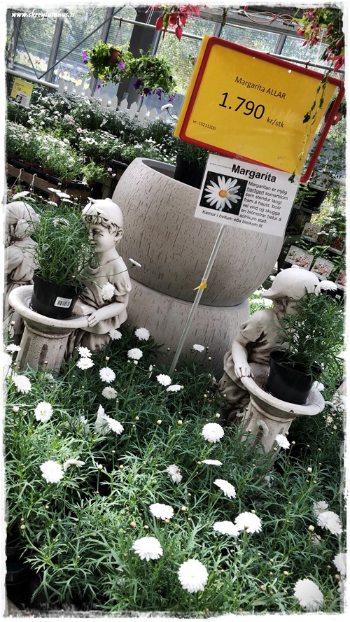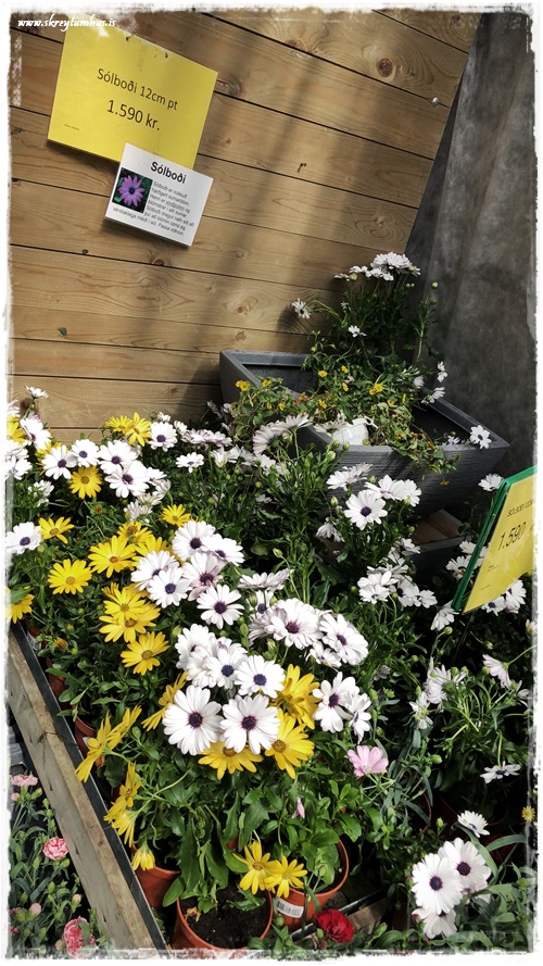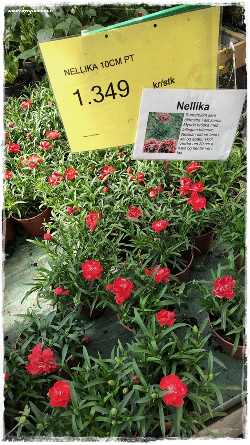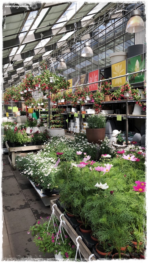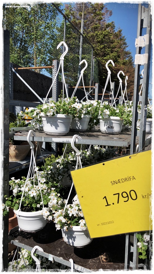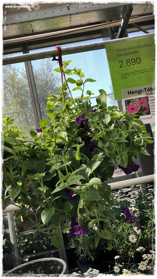 Við hreinsuðum pallinn og húsgögnin, og þá er bara eitt í boði, skunda í Blómaval og redda sér sumarblómum til þess að vekja pallinn til lífsins aftur…