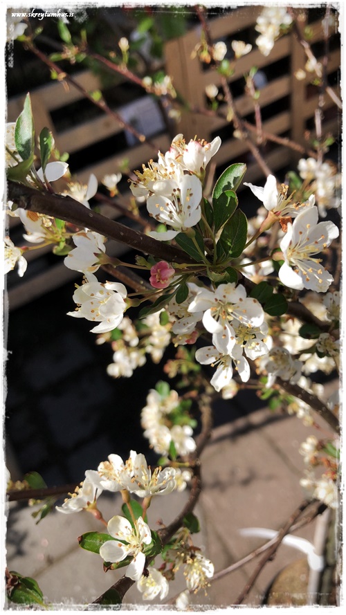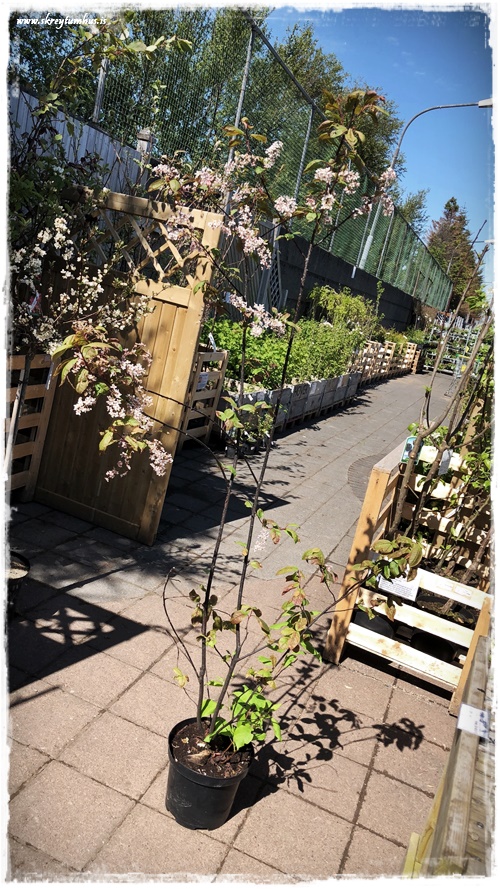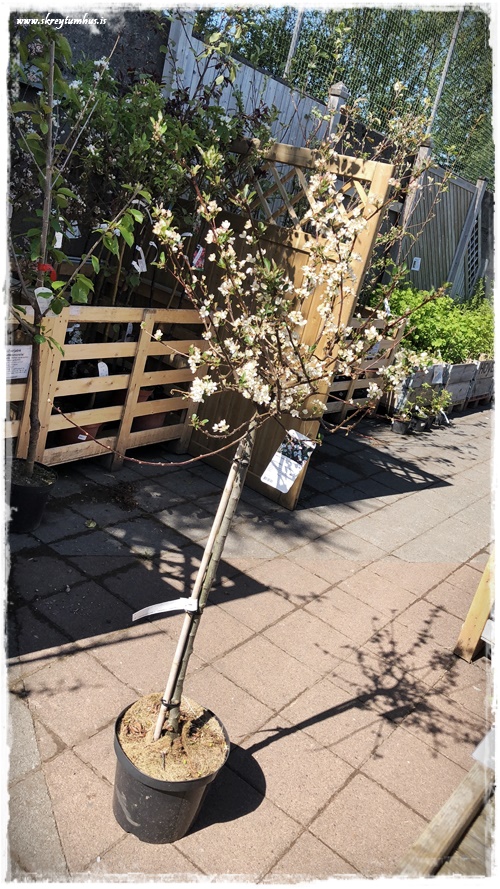 …ég endaði sjálf með að tala Malus toringo “Tina”, eða Paradísareplatré. Mér var ráðlagt að færa það í stærri pott í haust og svo að koma því á skjólsælan stað í vetur, t.d. bara í horn úti á palli og aðeins undir skyggni og þá ætti það eiga framhaldslíf næsta sumar…