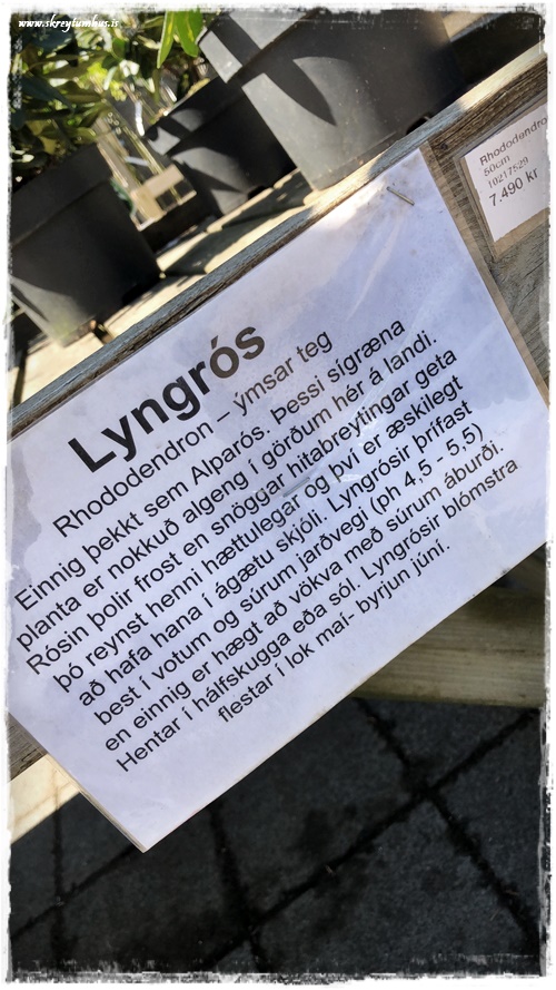 Þú þyrftir að skoppa til Bergen í byrjun júní og fara í Arboretet þar (grasagarðinn). Þar er hellingur af Alparós (Rhododendron) í allskonar litum!! Maður getur gleymt sér þar í marga klukkutíma!!