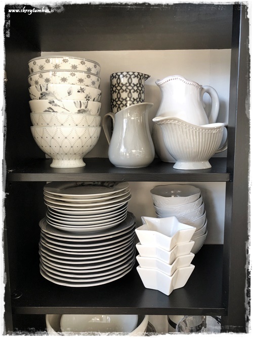 …hér standa t.d. skálarnar inni í nýja skápnum (sjá hér)…