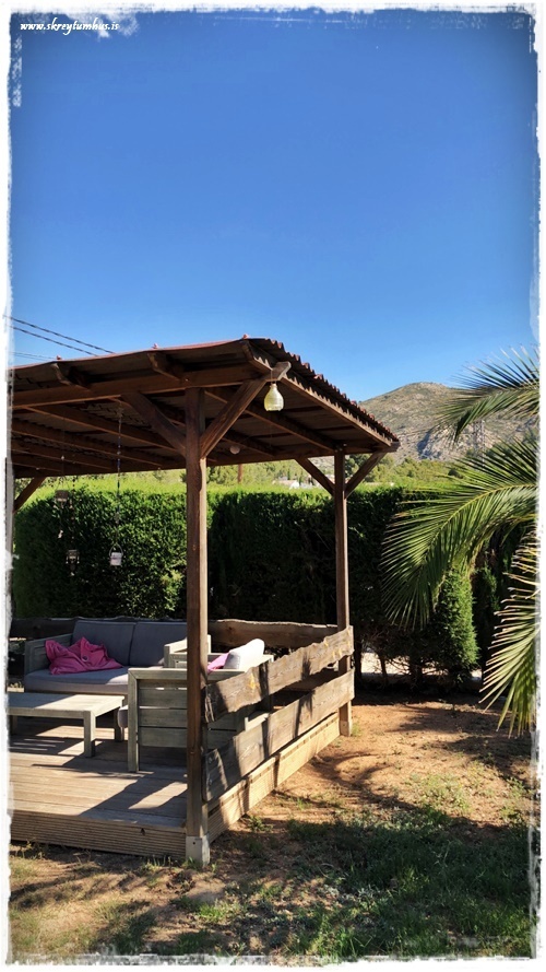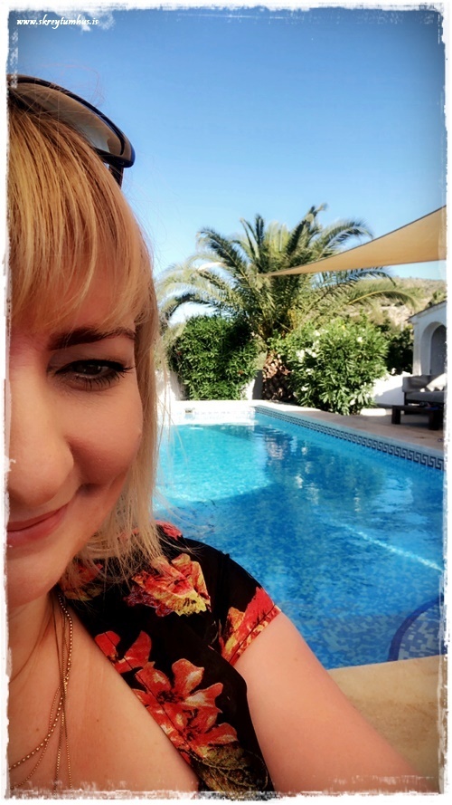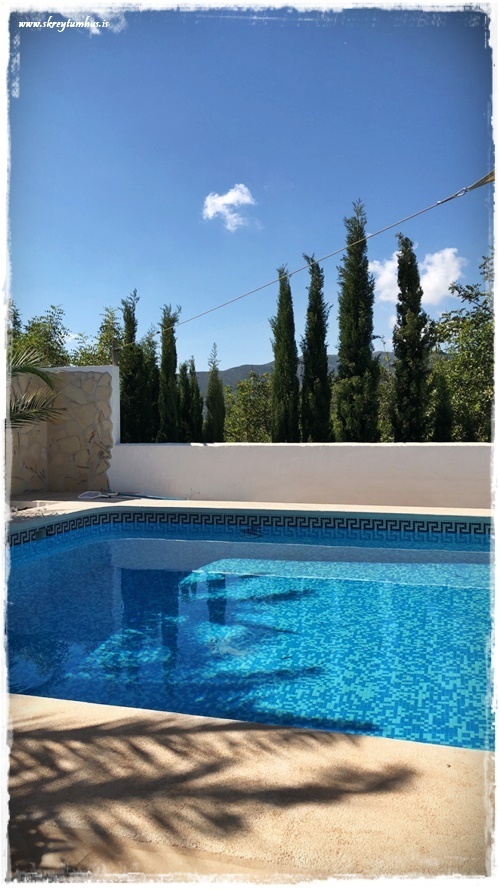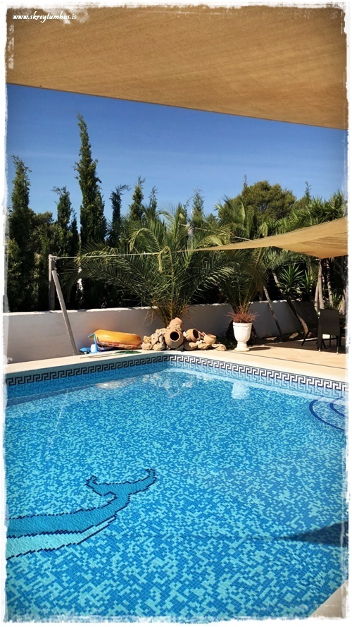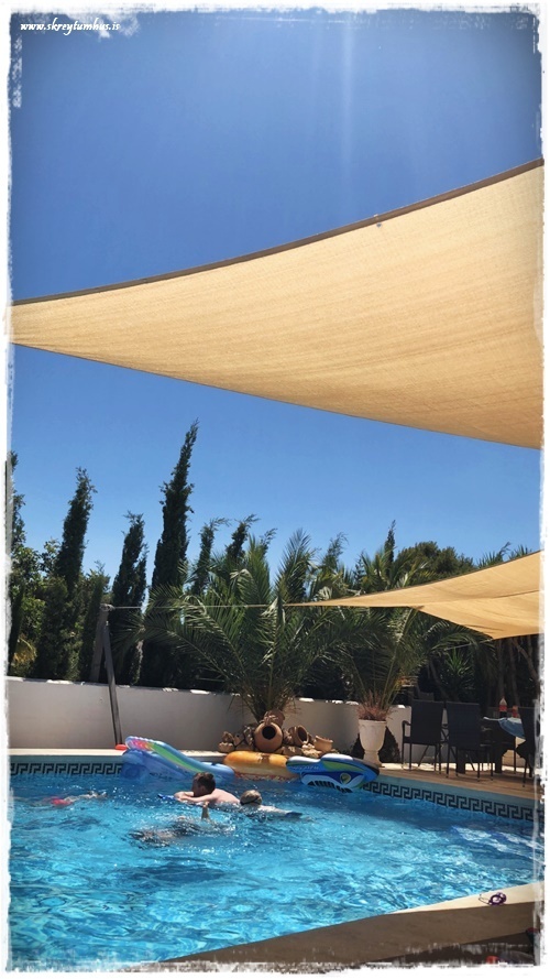 …og það sem skipti mestu máli, það var stór og flott laug með og þægileg útisvæði. Hægt að sitja í skugga og njóta þess að finna hlýjan andvarann, þannig að ekki hægt að kvarta yfir neinu…