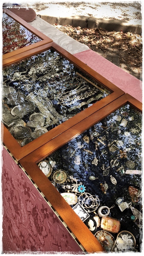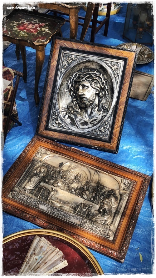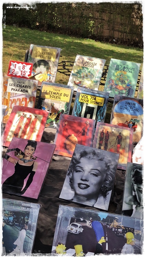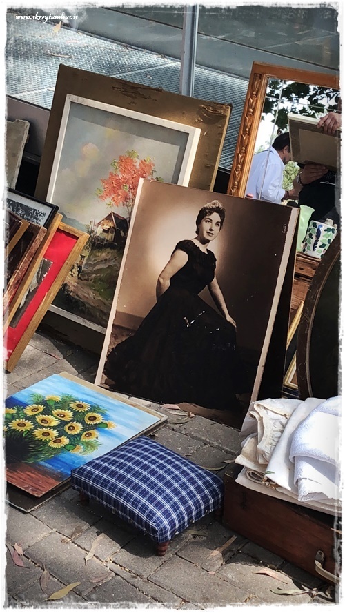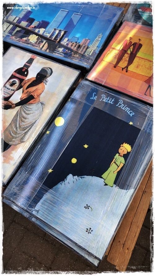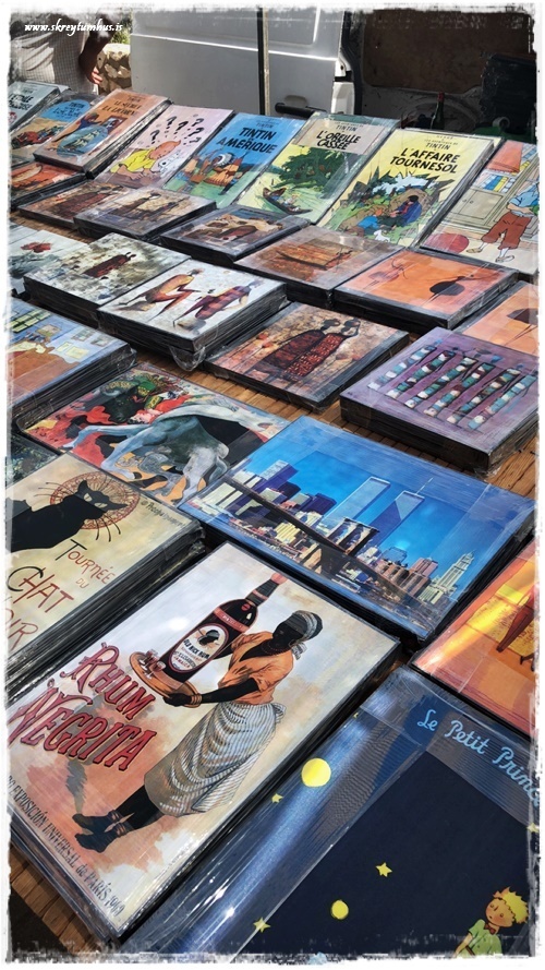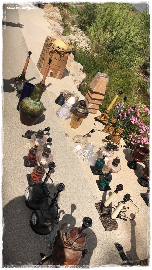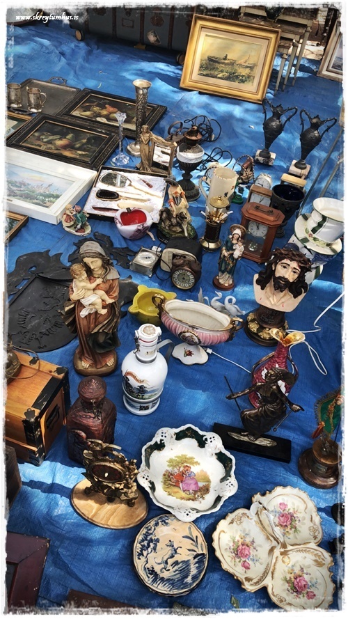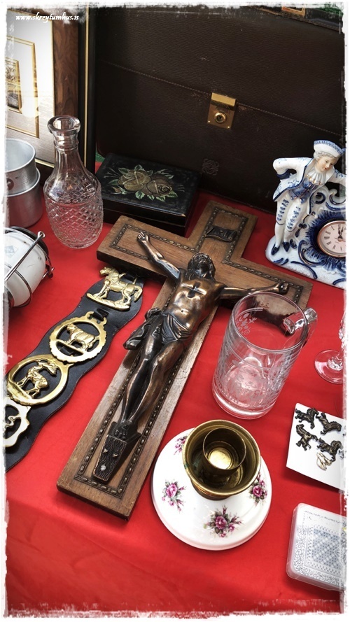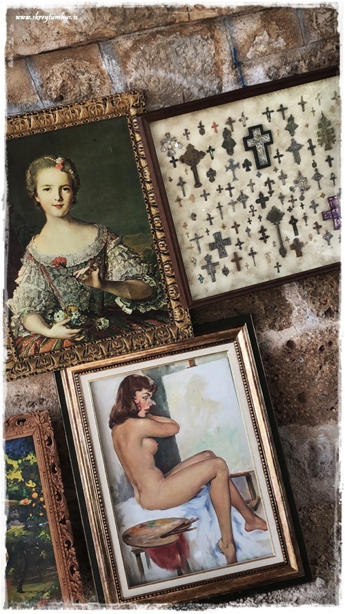 …þarna er alls konar – myndir og töskur og hnettir og lampar og styttur, allt á þessari einu mynd…