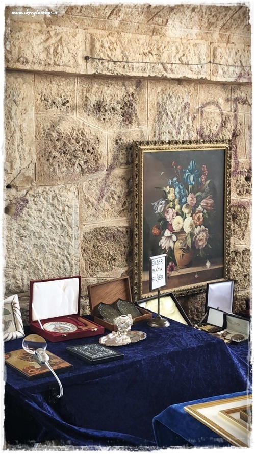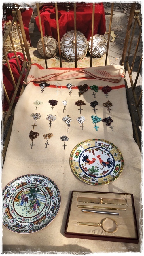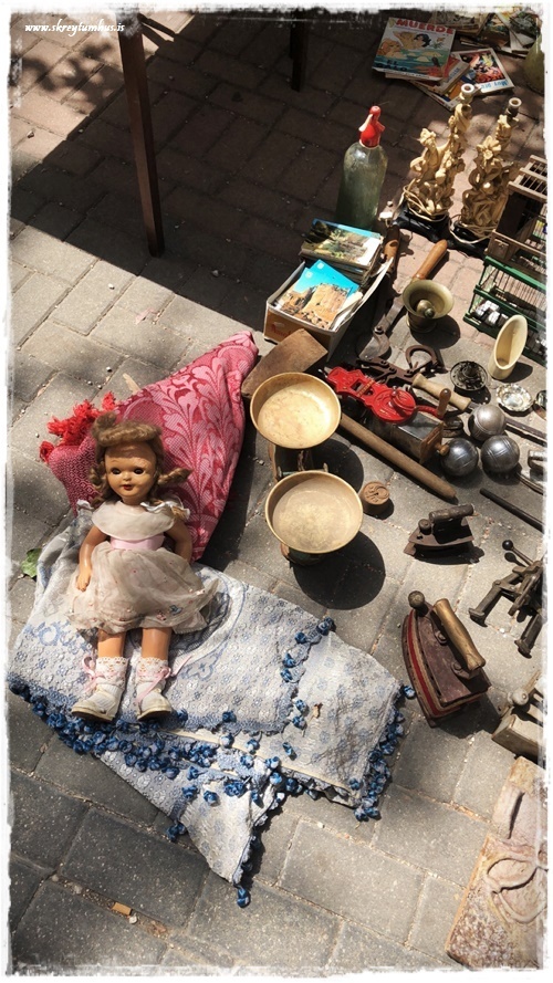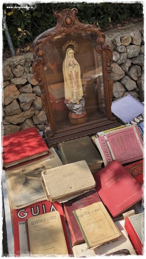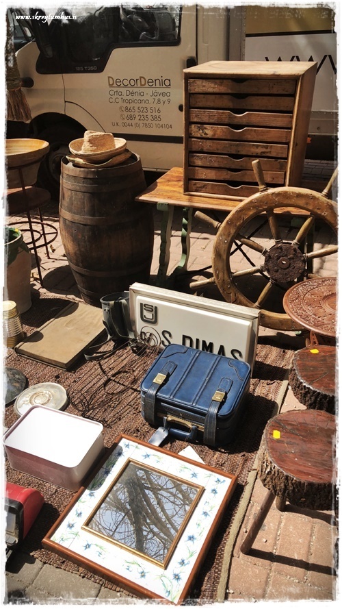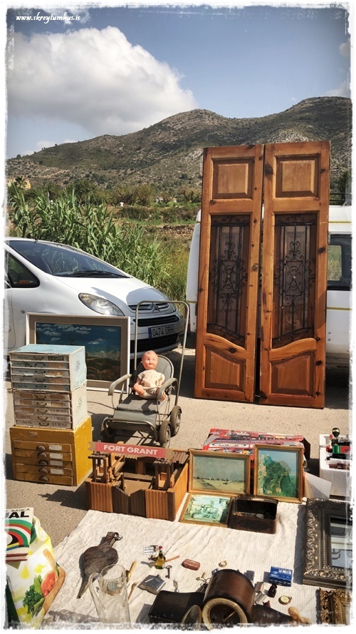 …eins og þið vitið þá eeeeeelska ég að gramsa og skoða á mörkuðum. Ég fer reglulega í fjársjóðleitir í Góða hirðinn og alla þessa staði og hef virkilega gaman af. Þegar við förum erlendis þá leita ég iðulega að einhverjum skemmtilegum mörkuðum og þess háttar til þess að skoða á. Þegar við vorum búin að ákveða í Jalon/Xalo (Spáni) sem gististað (sjá hér) þá fór ég auðvitað í það að googl-a svolítið staðinn og kanna hvað væri þarna í kring. Eitt af því fyrsta sem ég rakst á var antíkmarkaður sem er á laugardögum!