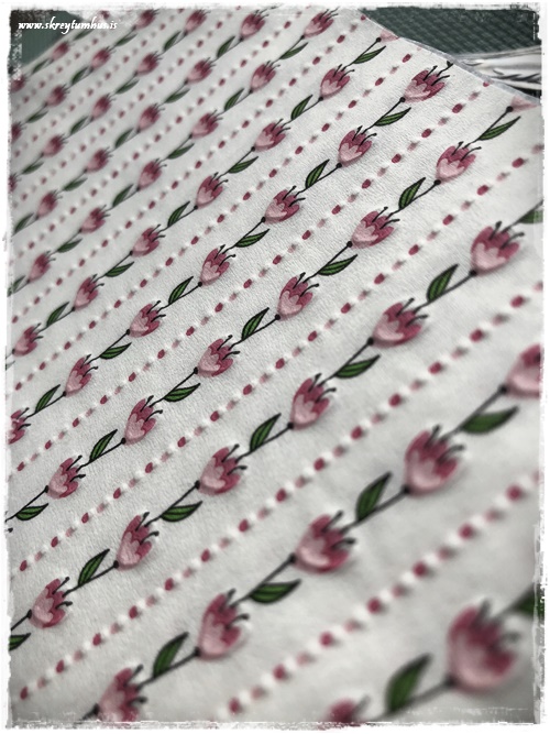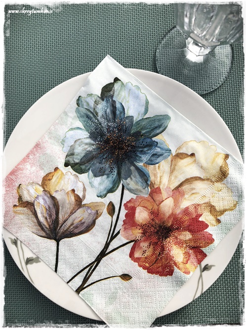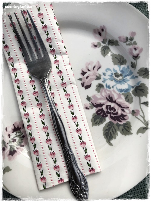 …þessar hérna servéttur eru síðan snilld. Þær eru svona upphleyptar, þannig ef þú strýkur hendinni yfir servéttuna, þá finnur þú fyrir blómunum…
