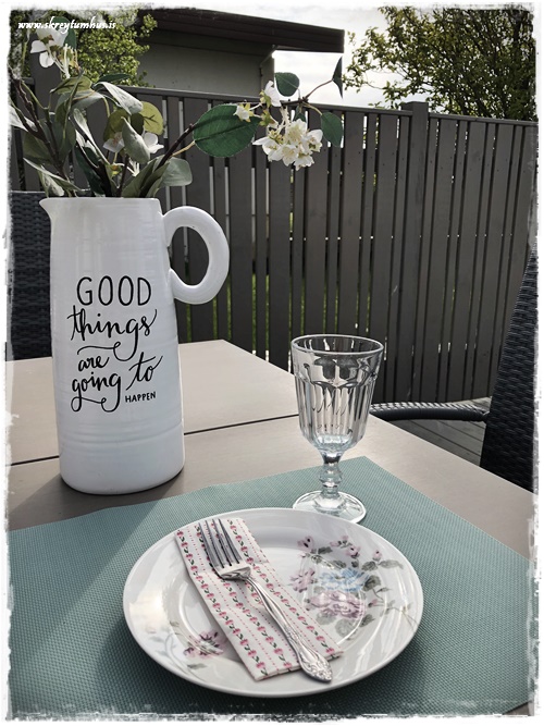 …en servéttur með bleikum rósum, ásamt því helst að vera með rósir í vasa er alveg hreint dásamlega fallegt…