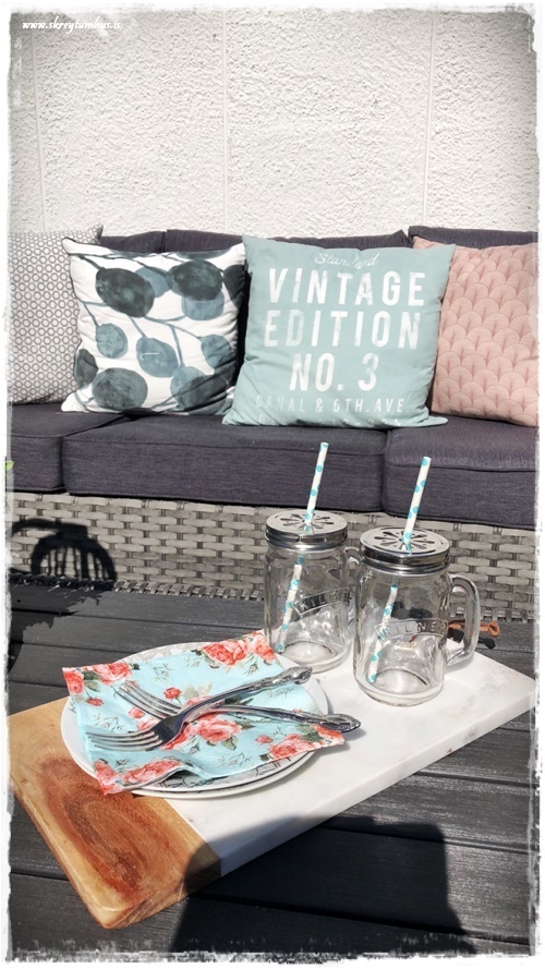 …við eyðum heilmiklum tíma úti á palli, og sérstaklega á sumrin, þegar að krakkarnir eru í fríi – þá eru alltaf einhver hrúga af börnum í drekkutíma hérna…