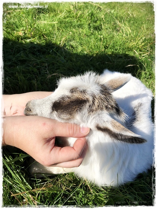 …það er svo yndislegt að vera þarna, því að það er enginn svona “dýragarðsfílingur” í gangi. Maður fer bara inn í girðingu, risastóra, þar sem geiturnar rölta um og heilsa upp á mann, ef þær nenna. Gæfa og yndislegar…