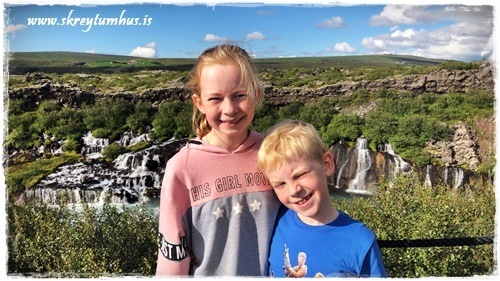 Við kíktum svo á Hraunfossana og í Húsafellið, þar sem krakkarnir hoppuðu á trampólíni og við fengum okkur að borða…