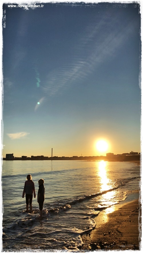 …á heimleiðinni var síðan sólin að setjast og það var hreint ómótstæðilegt að koma við á Akranesi og fara á Langasandinn…
