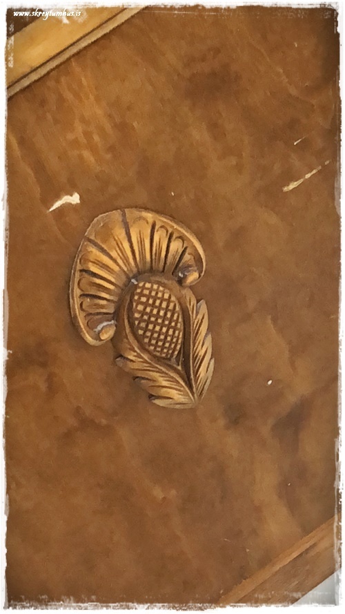 …með fallegum útskurði…