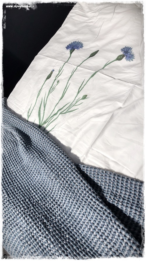 …það er líka snilld að vera með falleg rúmföt og þá þarf varla að búa um, eins og hér – bara skellt smá teppi til fóta. Líka til í gráu…