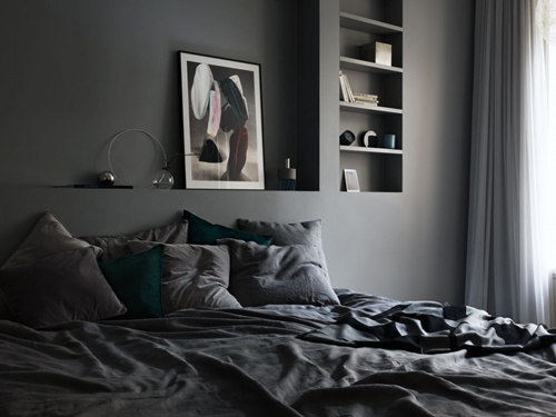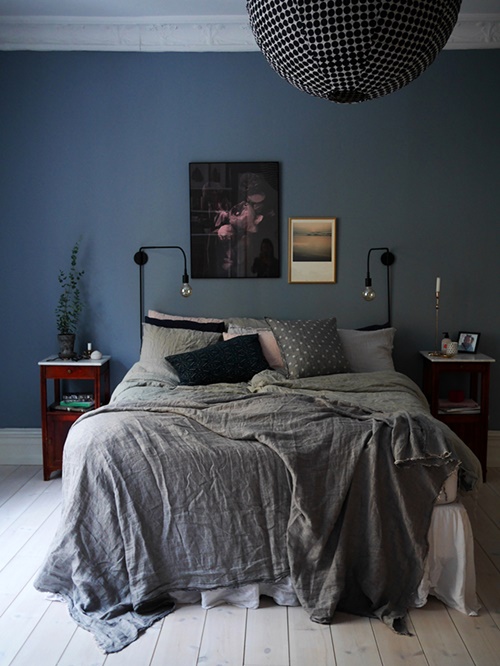 …þar sem svefnherbergi hafa verið mér ofarlega í huga undanfarið, þá fannst mér kjörið að birta hérna myndir af nokkrum herbergjum. Þau eiga það sameiginlegt að vera frekar svona “dimm” og kózý, og í raun mjög persónuleg. En það er nú einmitt það sem við eigum að sækjast eftir í rýmunum sem við erum að skapa í kringum okkur…