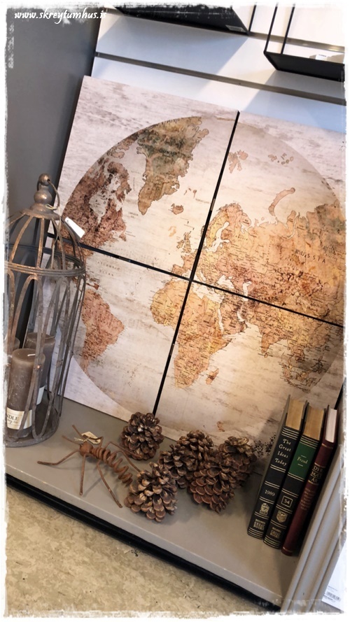 Vá hvað ég sé fyrra (fjórskipta) heimskortið fyrir mér í (verðandi) fína sjónvarpsherberginu mínu!! Þetta er greinilega búð sem er vel þess virði að heimsækja 🙂