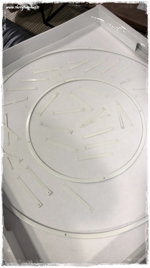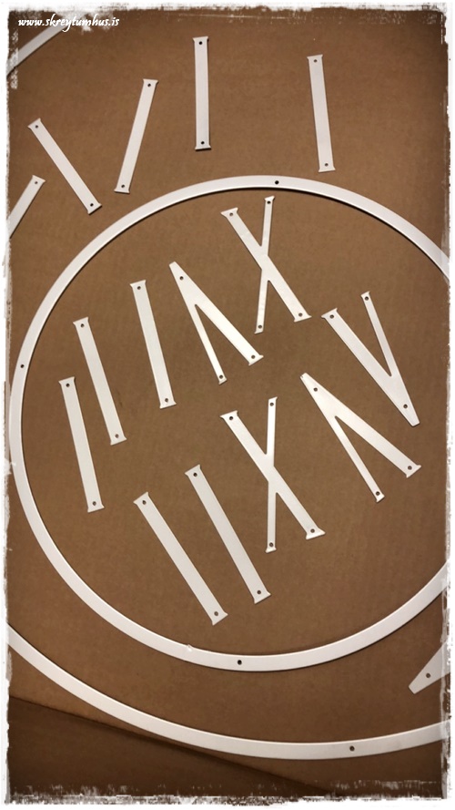 Hæ hæ. Klukkan kemur snilldar vel út. Góð hugmynd að nota kassann og plastið. Mig langar að vita hvort sófafæturnir eru úr áli/járni, og hvort málningin tolli örugglega á. Ég er með flotta svarta borðstofustóla með álfótum sem myndu passa betur í minni stofu ef fæturnir væru svartir. Takk fyrir skemmtilega pósta 👍