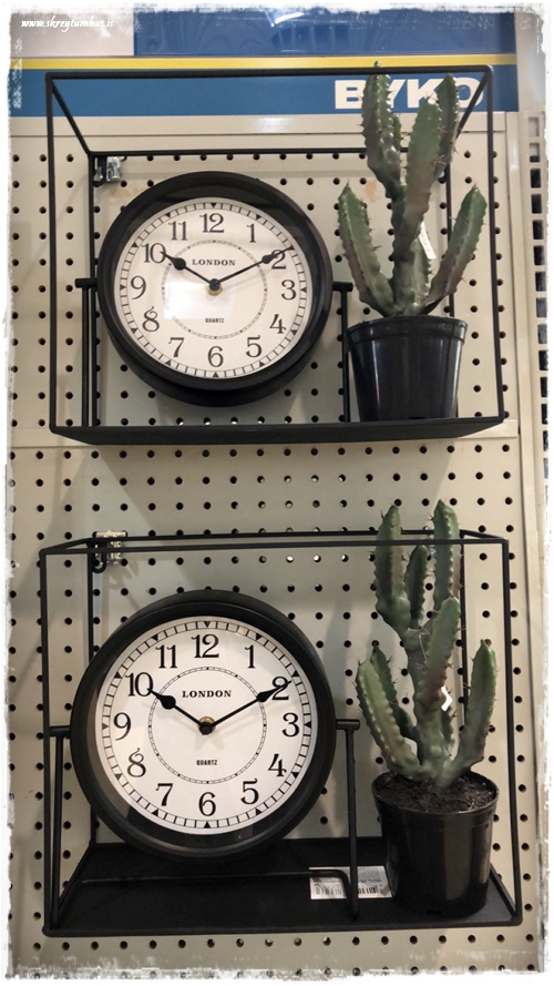 …geggjaðar vegghillur og klukkur…