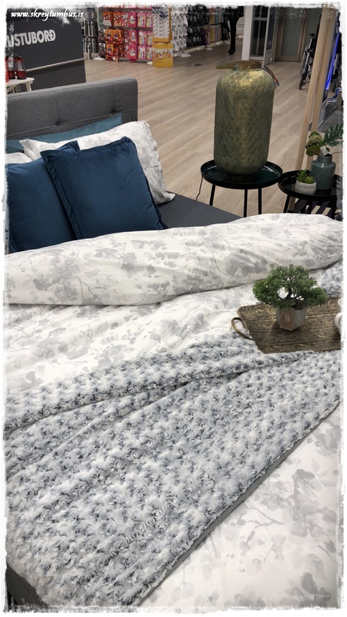 …svo finnst mér æðislegt að vera bara með svona kózý teppi til þess að henda ofan á sængurfötin, það kemur alltaf fallega út…