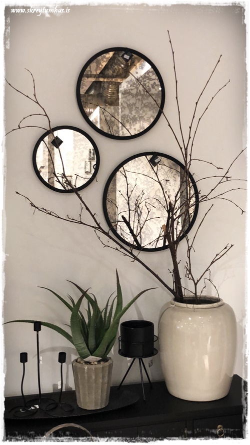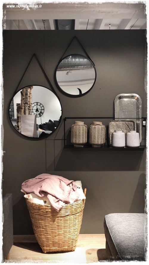 …mikið af fallegum svona álvegghillum, í alls konar stærðum og gerðum – og þessir kringlóttu speglar eru geggjaðir…