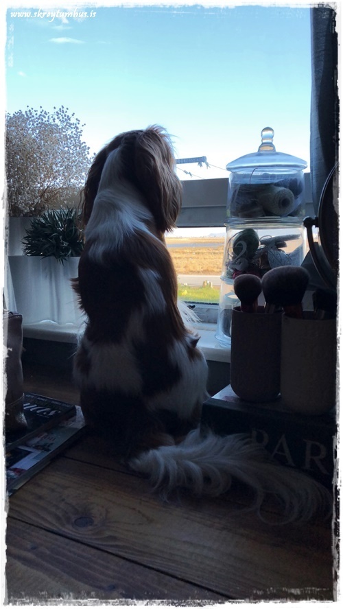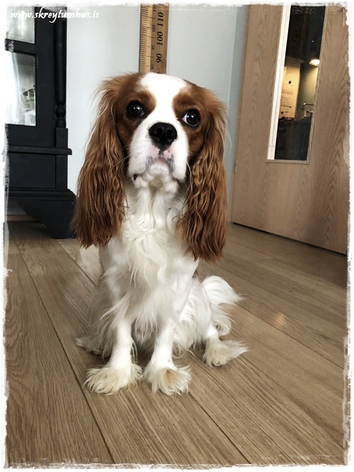 …hér sjáið þið svipinn á Mola einn morguninn þegar ég sagði honum að við værum að fá næturgest í heila viku…